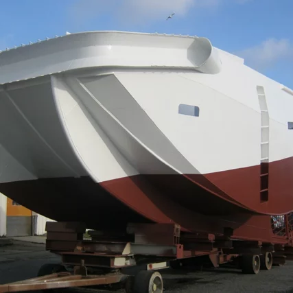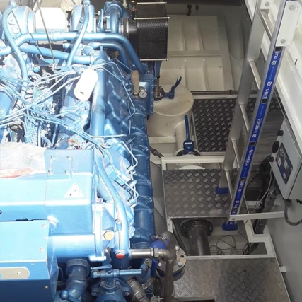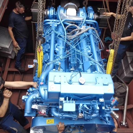 Montage complet skiff pour thonier CFTO – installation tube étambot, ligne d’arbre, hélice, tuyère, lignage réducteur et moteur BAUDOUIN 12M26.2 + calage résine Chockfast
